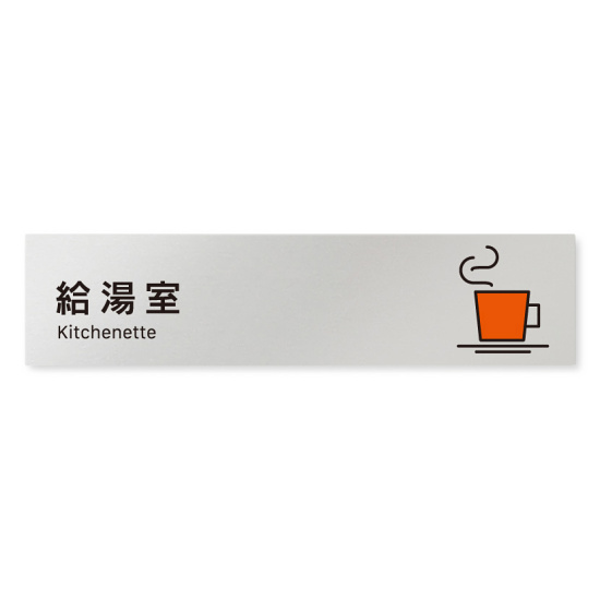 デザイナールームプレート 会社向け ビビット 給湯室1 アルミ板 W250×H60 (AL-1515-OB-IM3-0219)