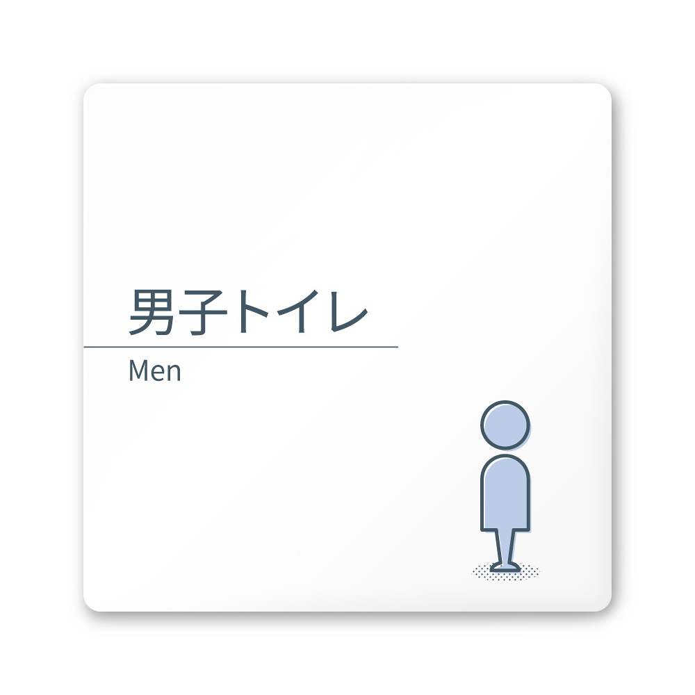 デザイナールームプレート 会社向け ミニマル 男子トイレ1 白マットアクリル W150×H150 (AC-1515-OA-KM1-0103)