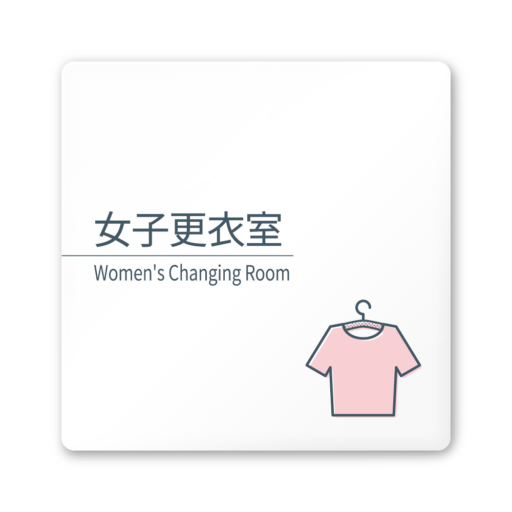 デザイナールームプレート 会社向け ミニマル 女子更衣室 白マットアクリル W150×H150 (AC-1515-OA-KM1-0109)