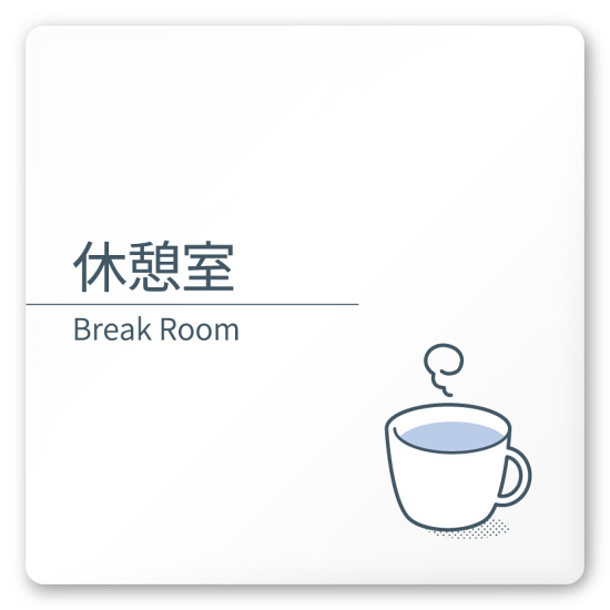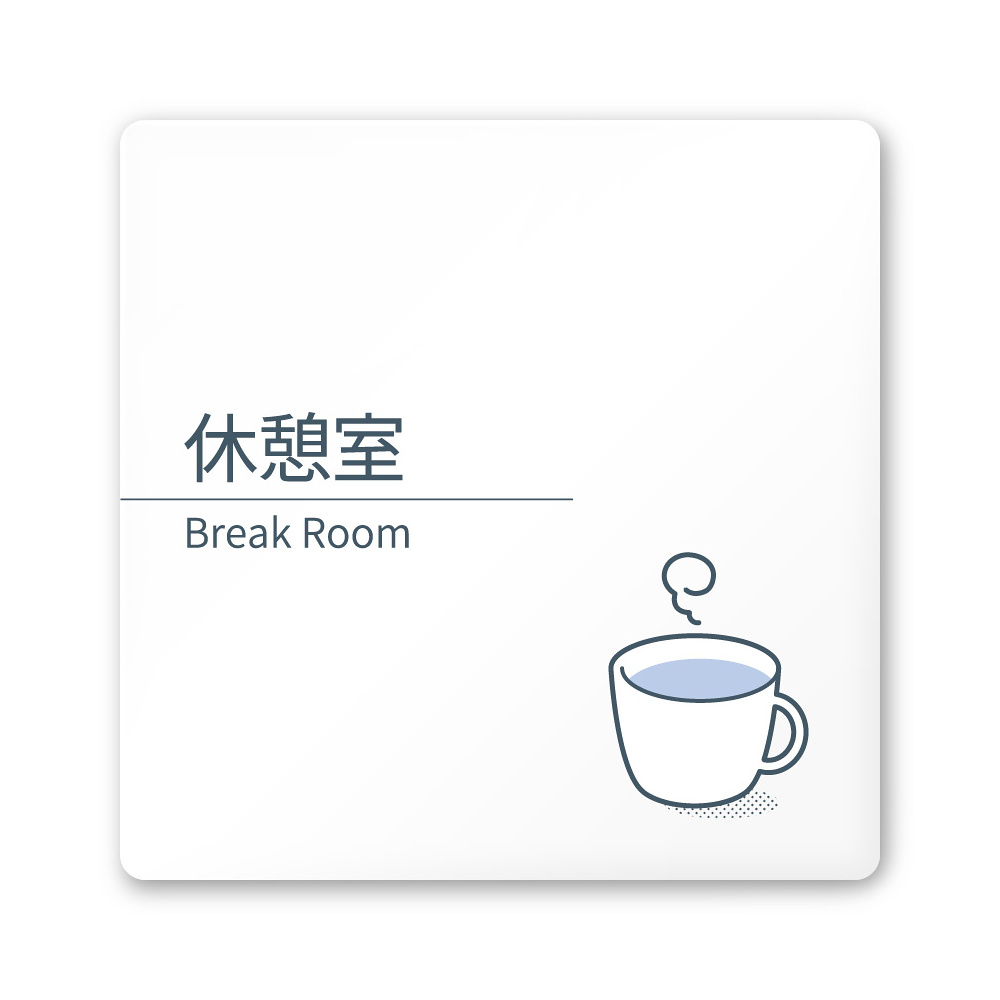 デザイナールームプレート 会社向け ミニマル 休憩室 白マットアクリル W150×H150 (AC-1515-OA-KM1-0116)
