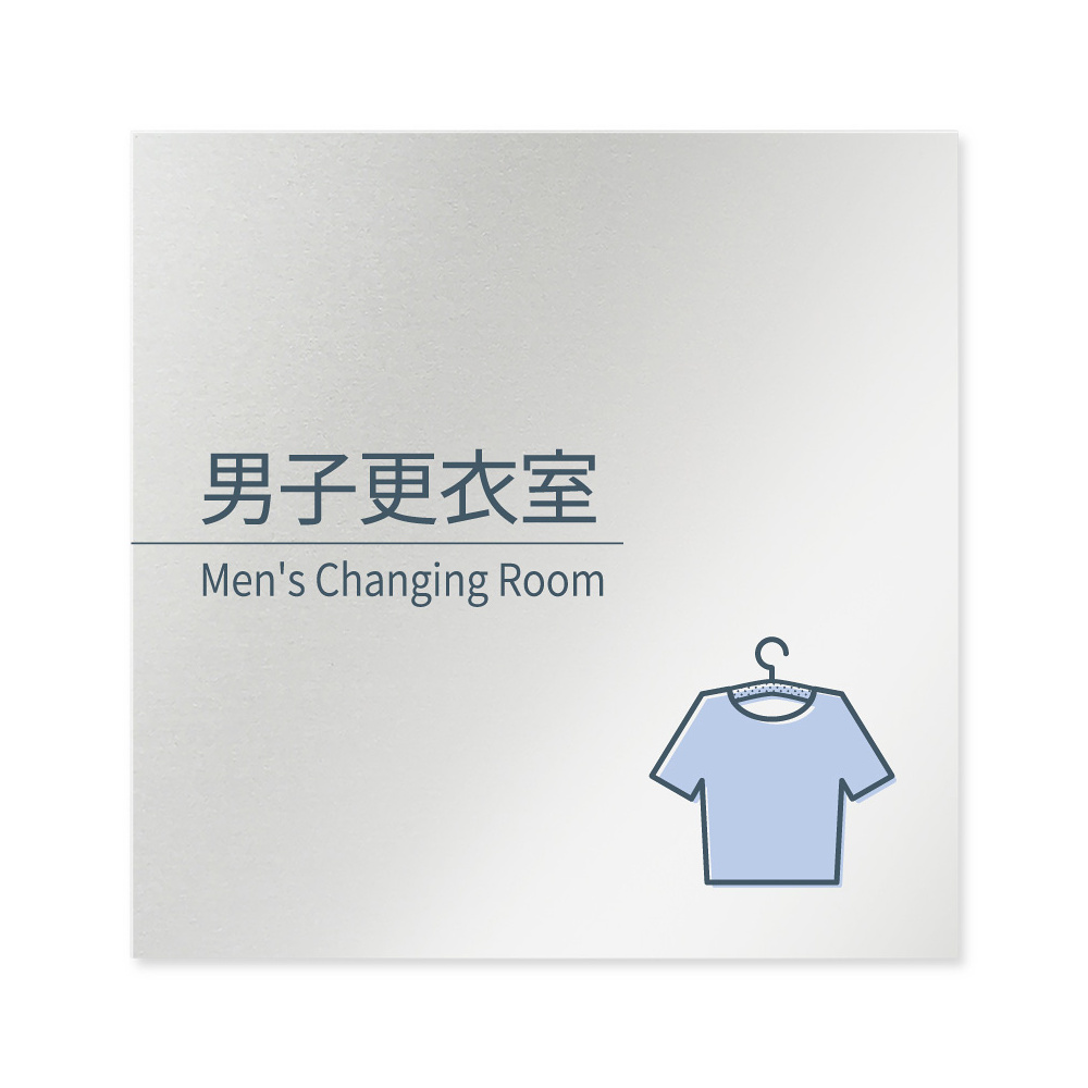 商品説明:デザイナールームプレート 会社向け ミニマル 男子更衣室 アルミ板 W150×H150 (AL-1515-OB-KM1-0108)