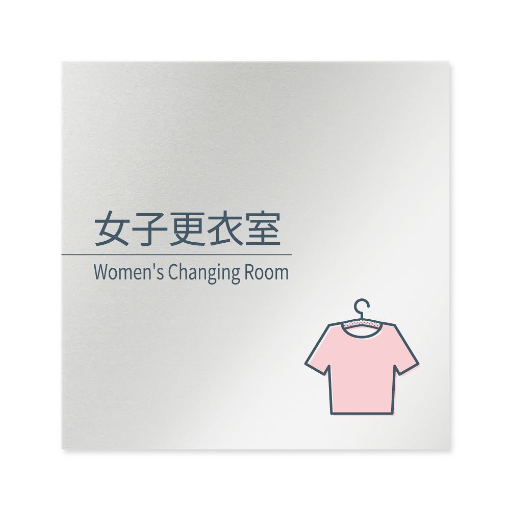 商品説明:デザイナールームプレート 会社向け ミニマル 女子更衣室 アルミ板 W150×H150 (AL-1515-OB-KM1-0109)