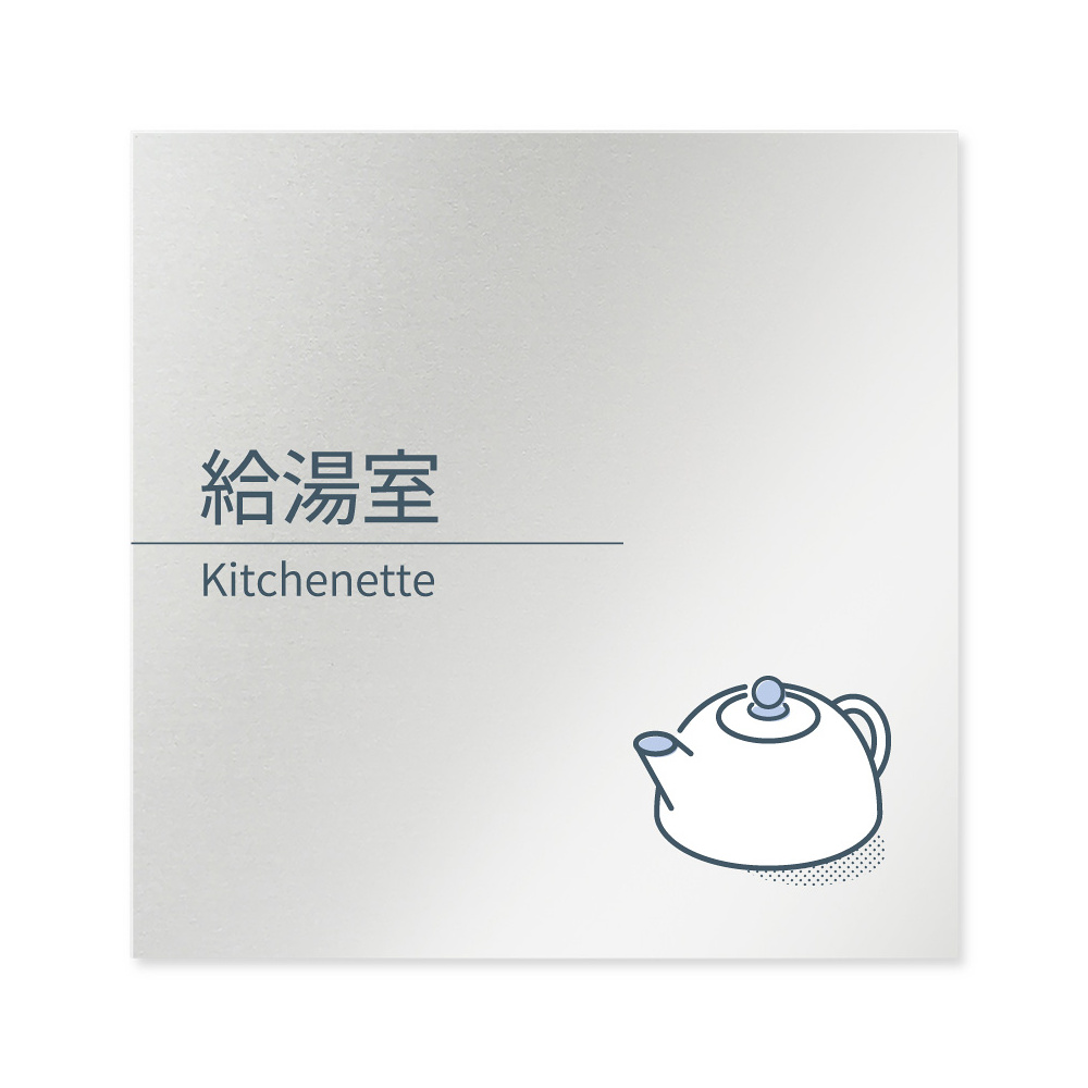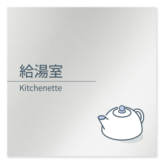 デザイナールームプレート 会社向け ミニマル 給湯室1 アルミ板 W150×H150 (AL-1515-OB-KM1-0119)