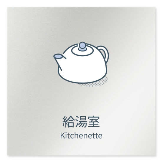 デザイナールームプレート 会社向け ミニマル 給湯室2 アルミ板 W150×H150 (AL-1515-OB-KM1-0120)
