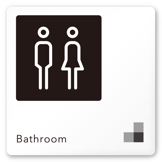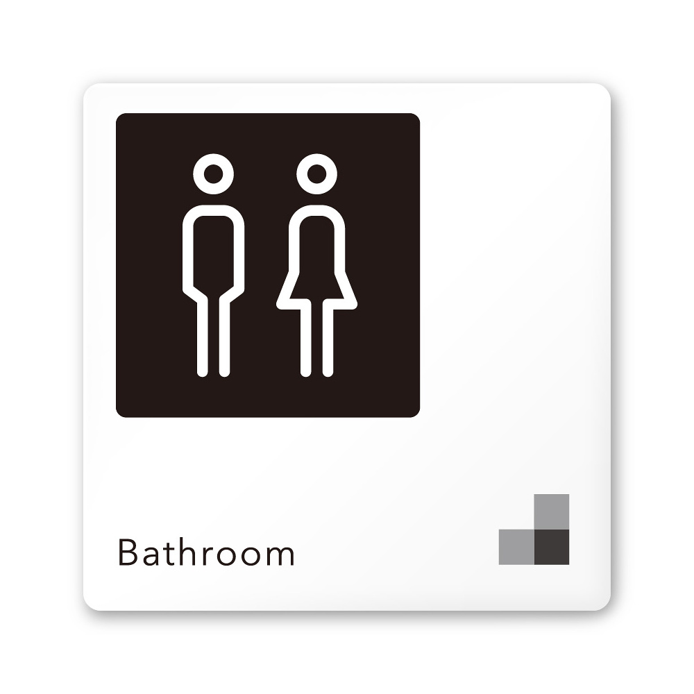デザイナールームプレート 会社向け モノクロ1 トイレ2 白マットアクリル W150×H150 (AC-1515-OA-NH1-0102)