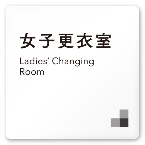 商品説明:デザイナールームプレート 会社向け モノクロ1 女子更衣室 白マットアクリル W150×H150 (AC-1515-OA-NH1-0109)