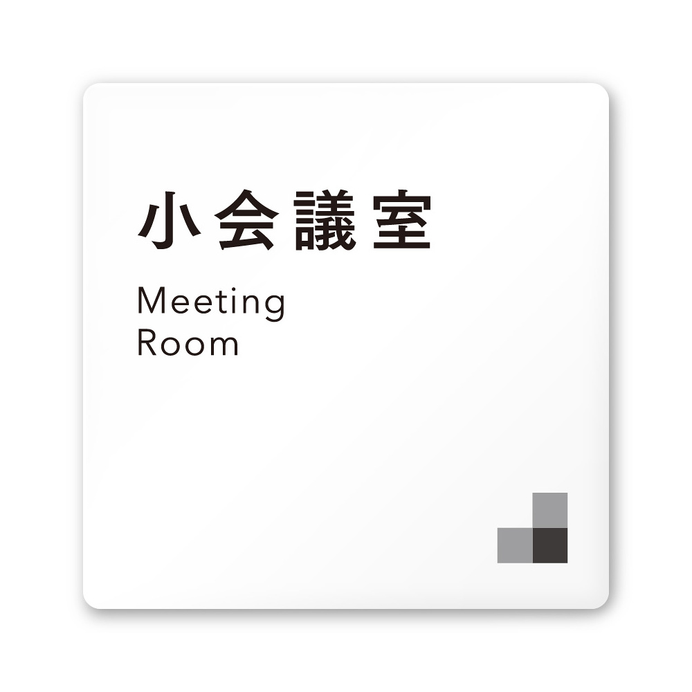 デザイナールームプレート 会社向け モノクロ1 小会議室 白マットアクリル W150×H150 (AC-1515-OA-NH1-0110)