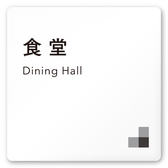 デザイナールームプレート 会社向け モノクロ1 食堂 白マットアクリル W150×H150 (AC-1515-OA-NH1-0117)