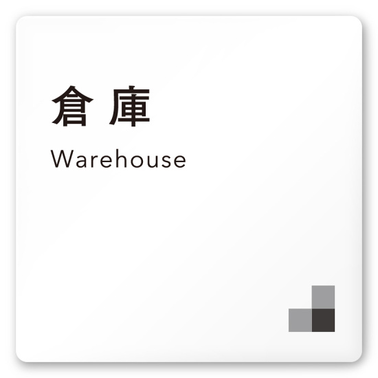 デザイナールームプレート 会社向け モノクロ1 倉庫 白マットアクリル W150×H150 (AC-1515-OA-NH1-0118)