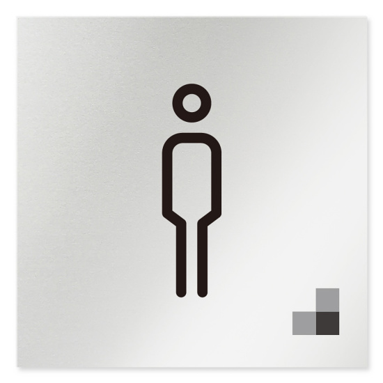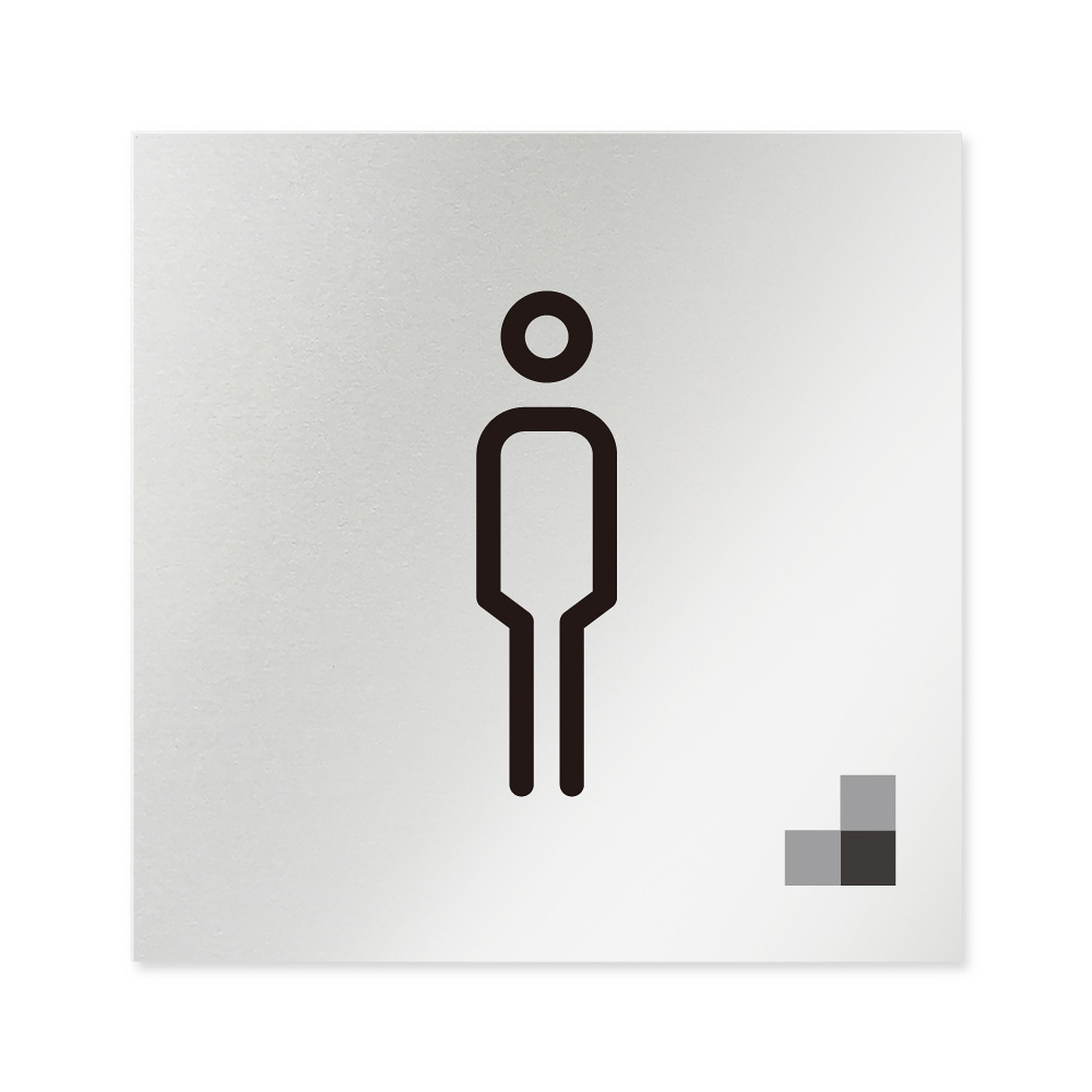 商品説明:デザイナールームプレート 会社向け モノクロ1 男子トイレ1 アルミ板 W150×H150 (AL-1515-OB-NH1-0103)