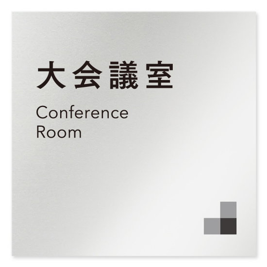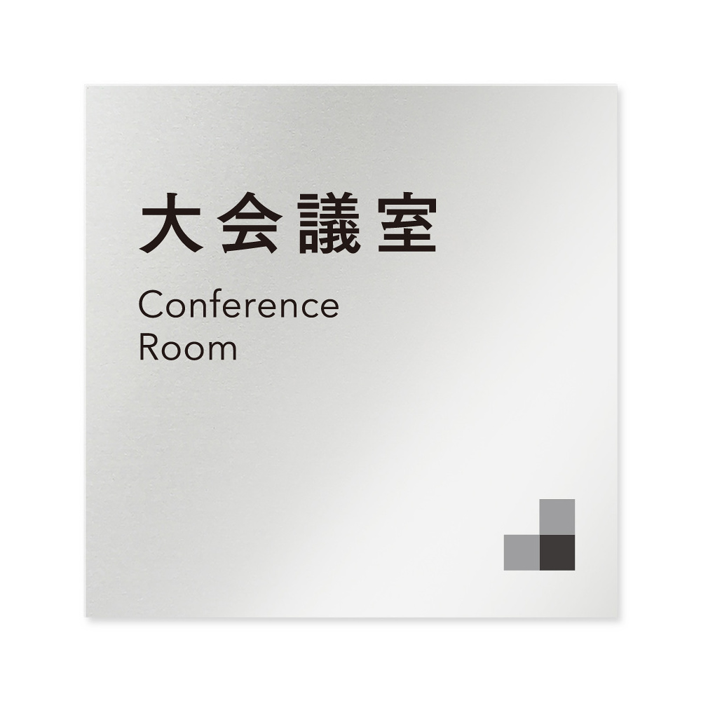 デザイナールームプレート 会社向け モノクロ1 大会議室 アルミ板 W150×H150 (AL-1515-OB-NH1-0111)