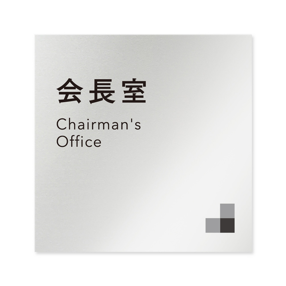 デザイナールームプレート 会社向け モノクロ1 会長室 アルミ板 W150×H150 (AL-1515-OB-NH1-0113)