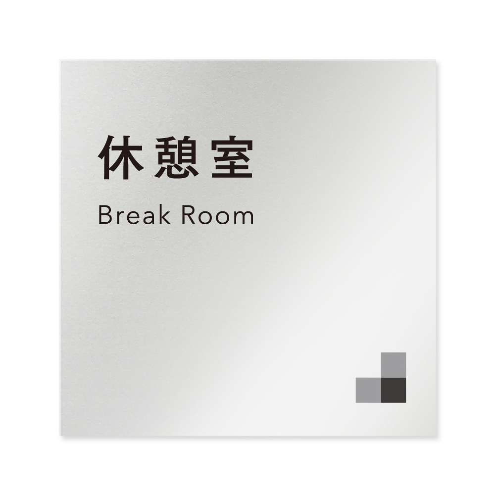 デザイナールームプレート 会社向け モノクロ1 休憩室 アルミ板 W150×H150 (AL-1515-OB-NH1-0116)
