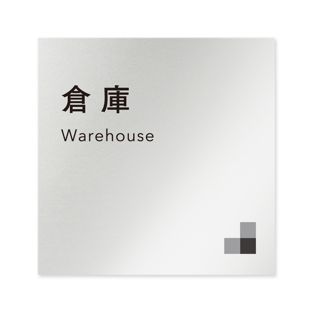 デザイナールームプレート 会社向け モノクロ1 倉庫 アルミ板 W150×H150 (AL-1515-OB-NH1-0118)