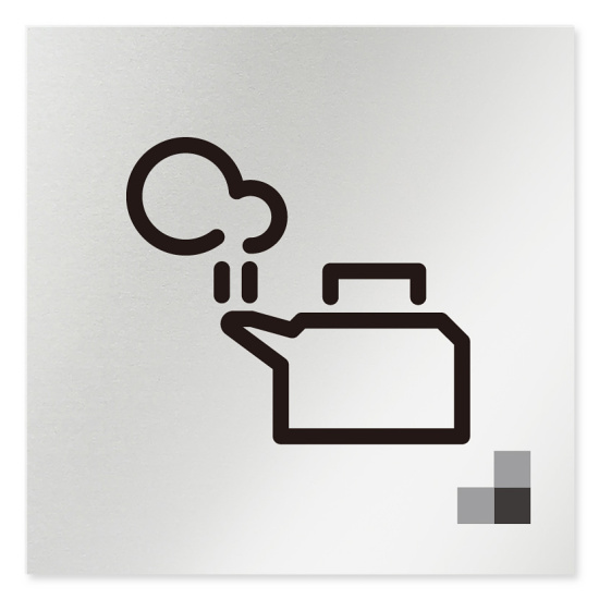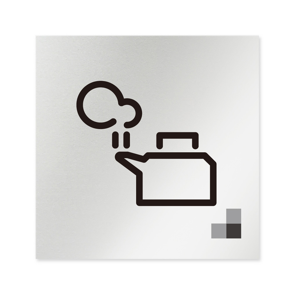 デザイナールームプレート 会社向け モノクロ1 給湯室1 アルミ板 W150×H150 (AL-1515-OB-NH1-0119)