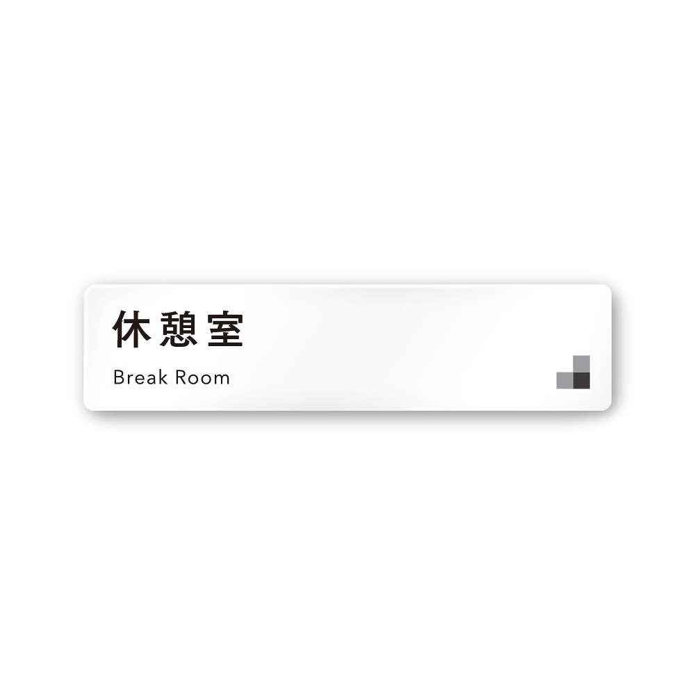 デザイナールームプレート 会社向け モノクロ1 休憩室 白マットアクリル W250×H60 (AC-2560-OA-NH1-0216)