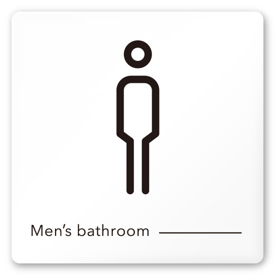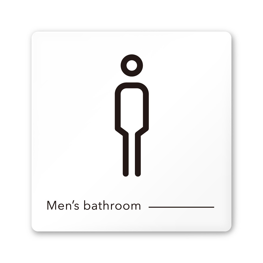 商品説明:デザイナールームプレート 会社向け モノクロ2 男子トイレ1 白マットアクリル W150×H150 (AC-1515-OA-NH2-0103)