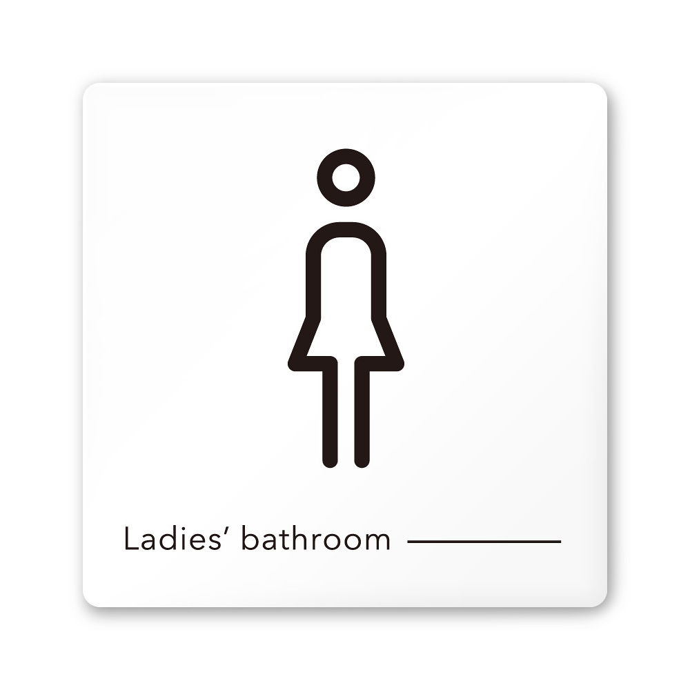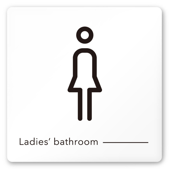 商品説明:デザイナールームプレート 会社向け モノクロ2 女子トイレ1 白マットアクリル W150×H150 (AC-1515-OA-NH2-0105)