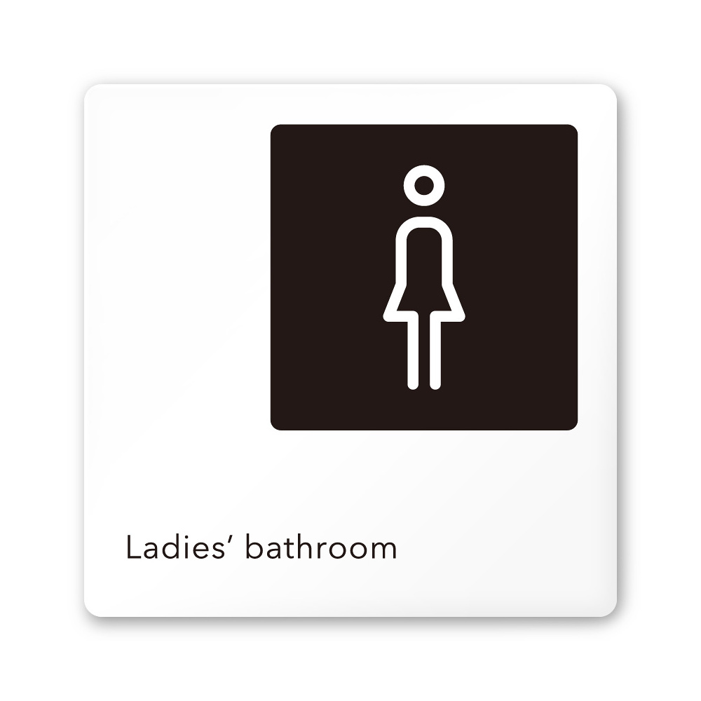 商品説明:デザイナールームプレート 会社向け モノクロ2 女子トイレ2 白マットアクリル W150×H150 (AC-1515-OA-NH2-0106)