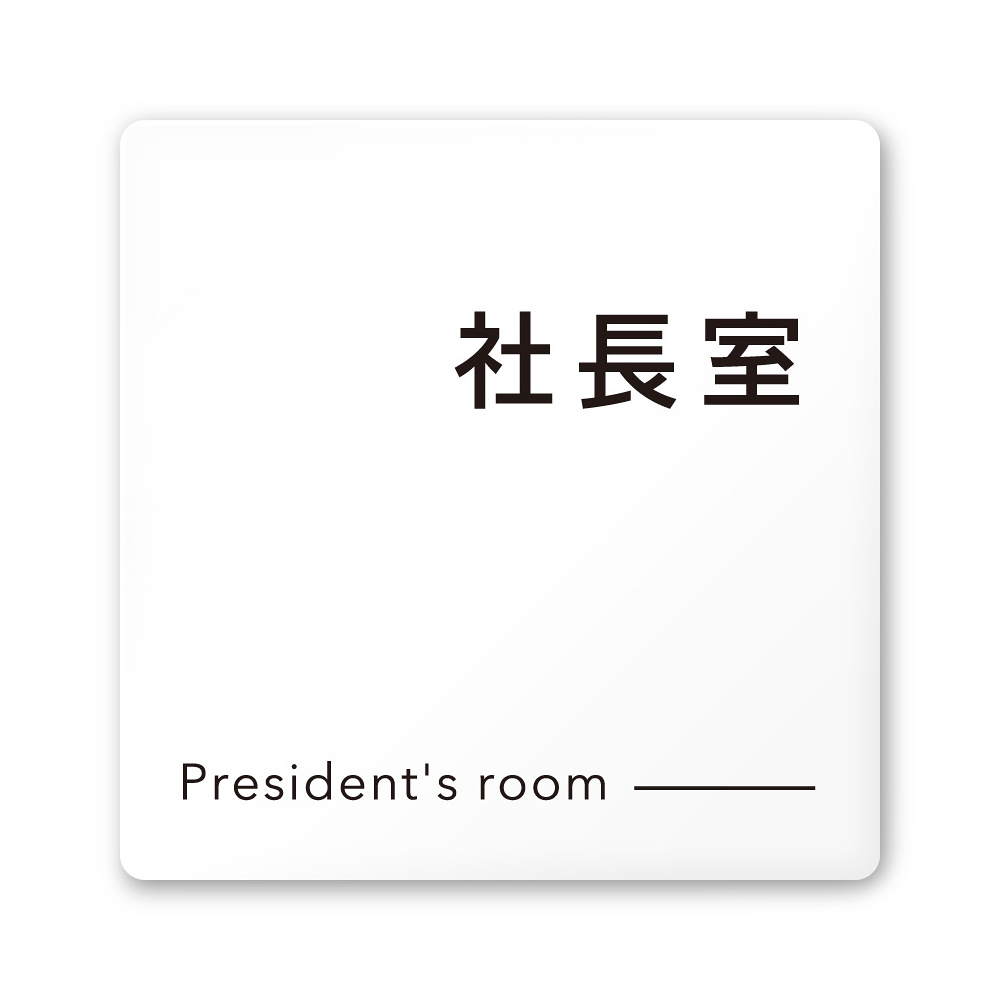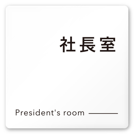 デザイナールームプレート 会社向け モノクロ2 社長室 白マットアクリル W150×H150 (AC-1515-OA-NH2-0114)