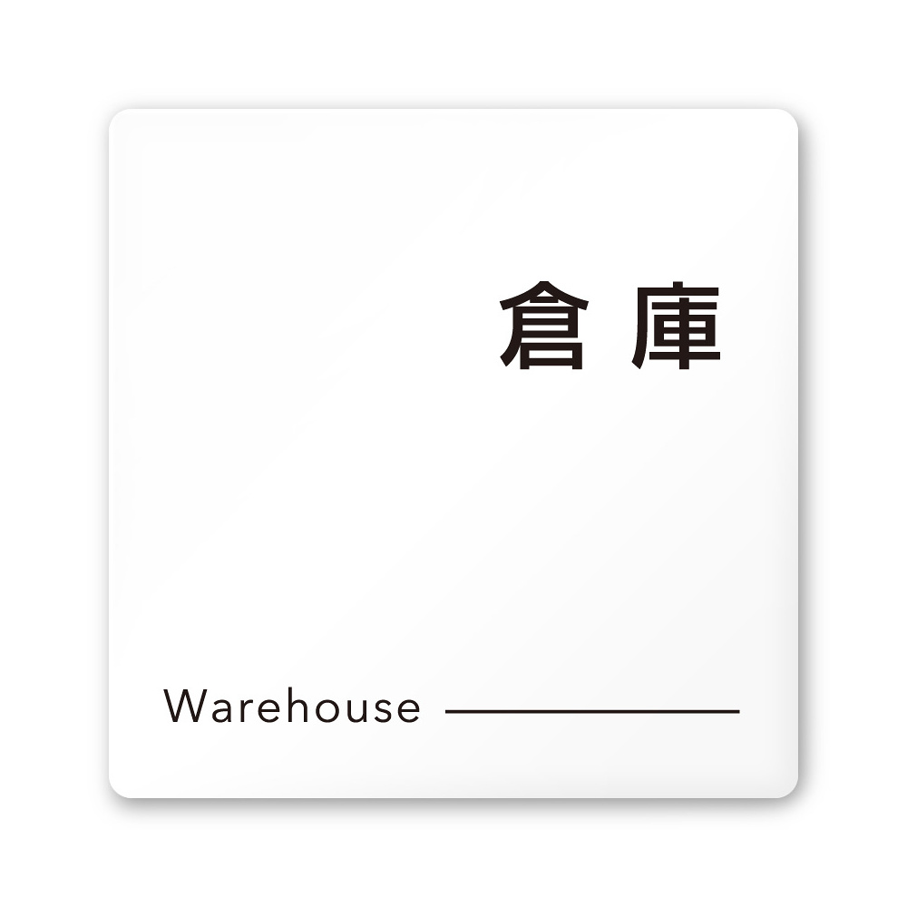 デザイナールームプレート 会社向け モノクロ2 倉庫 白マットアクリル W150×H150 (AC-1515-OA-NH2-0118)