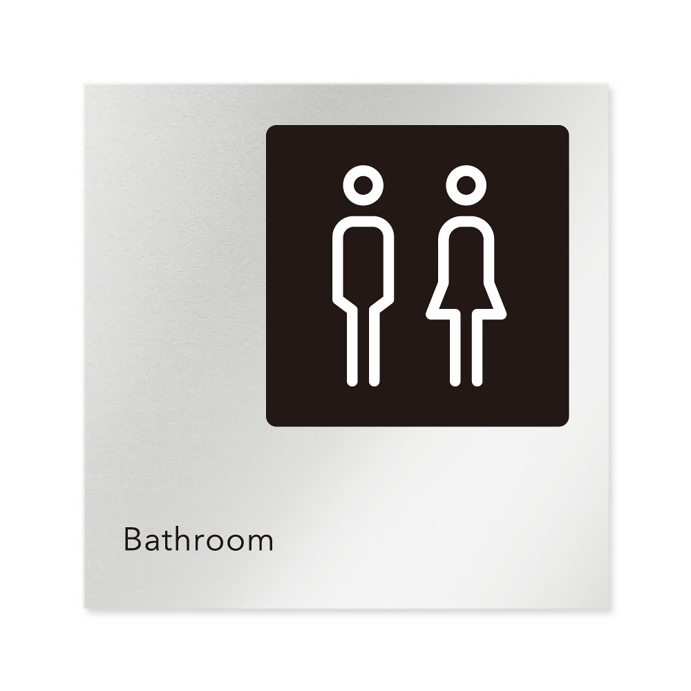 デザイナールームプレート 会社向け モノクロ2 トイレ2 アルミ板 W150×H150 (AL-1515-OB-NH2-0102)