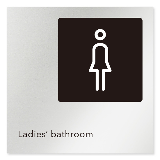 商品説明:デザイナールームプレート 会社向け モノクロ2 女子トイレ2 アルミ板 W150×H150 (AL-1515-OB-NH2-0106)