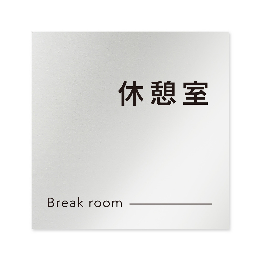 デザイナールームプレート 会社向け モノクロ2 休憩室 アルミ板 W150×H150 (AL-1515-OB-NH2-0116)