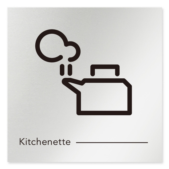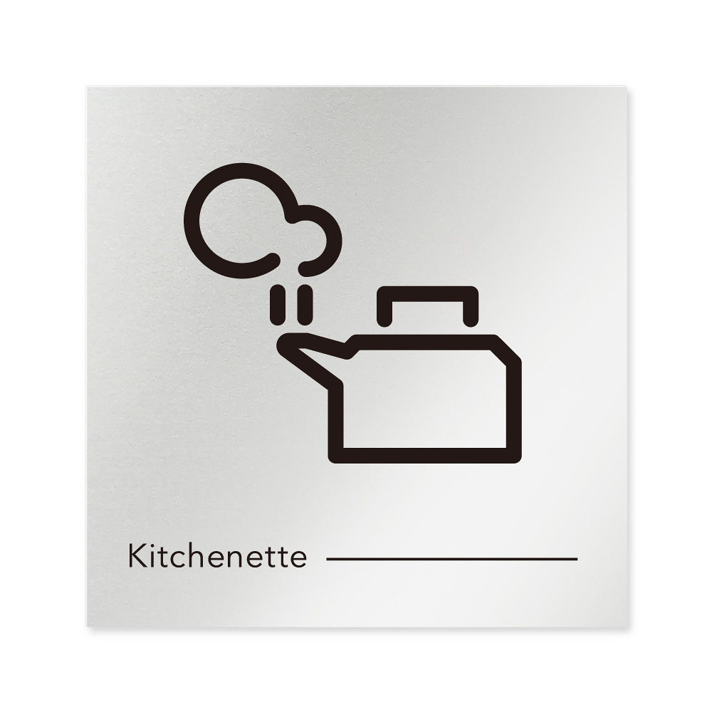 デザイナールームプレート 会社向け モノクロ2 給湯室2 アルミ板 W150×H151 (AL-1515-OA-NH2-0120)