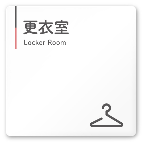 デザイナールームプレート 会社向け グレー×ピンク 更衣室 白マットアクリル W150×H150 (AC-1515-OA-NT1-0107)
