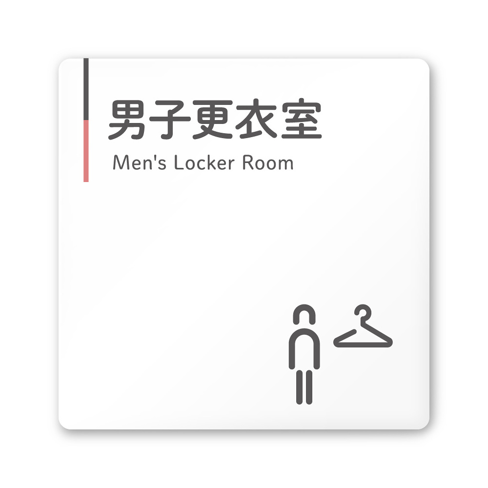 デザイナールームプレート 会社向け グレー×ピンク 男子更衣室 白マットアクリル W150×H150 (AC-1515-OA-NT1-0108)