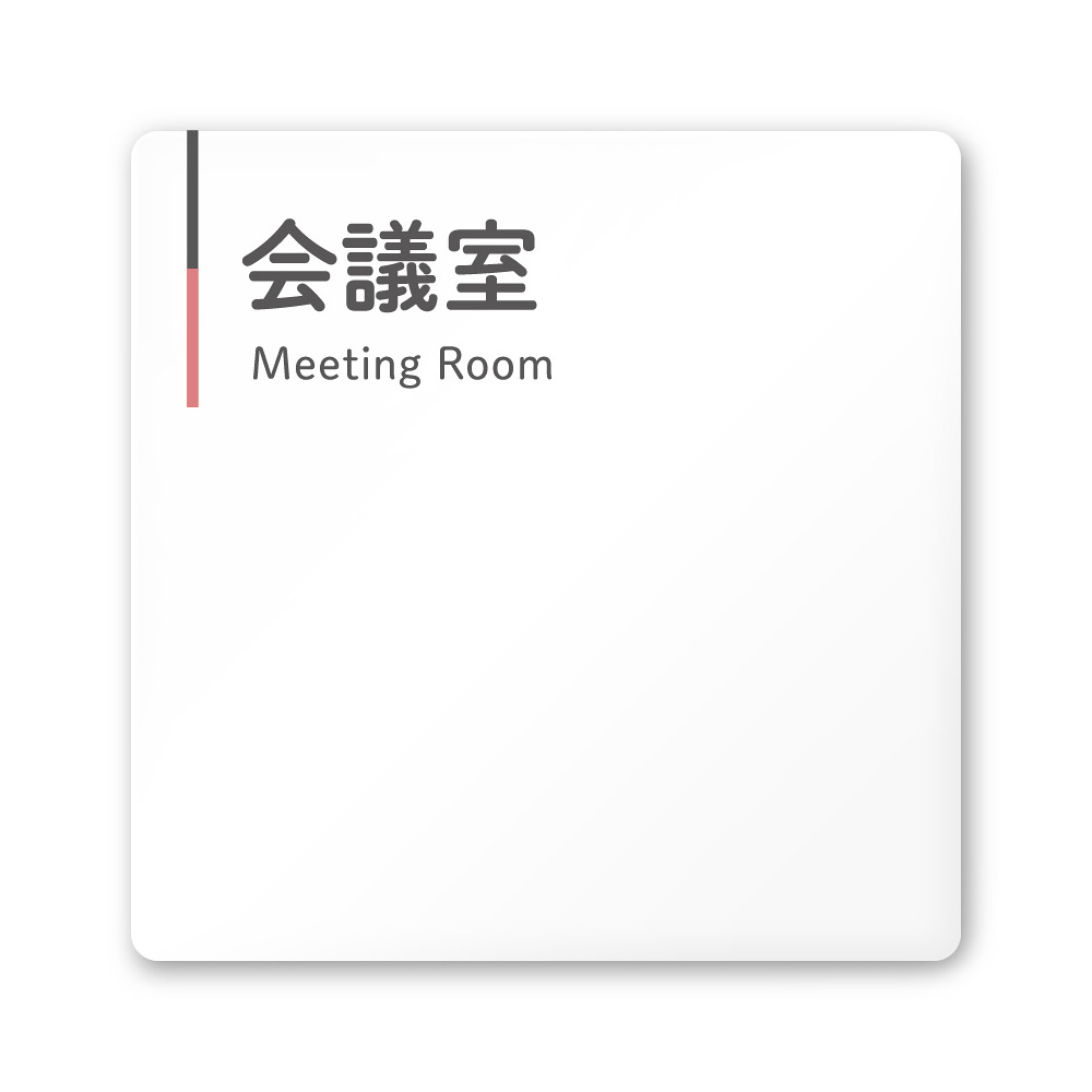 デザイナールームプレート 会社向け グレー×ピンク 会議室 白マットアクリル W150×H150 (AC-1515-OA-NT1-0112)