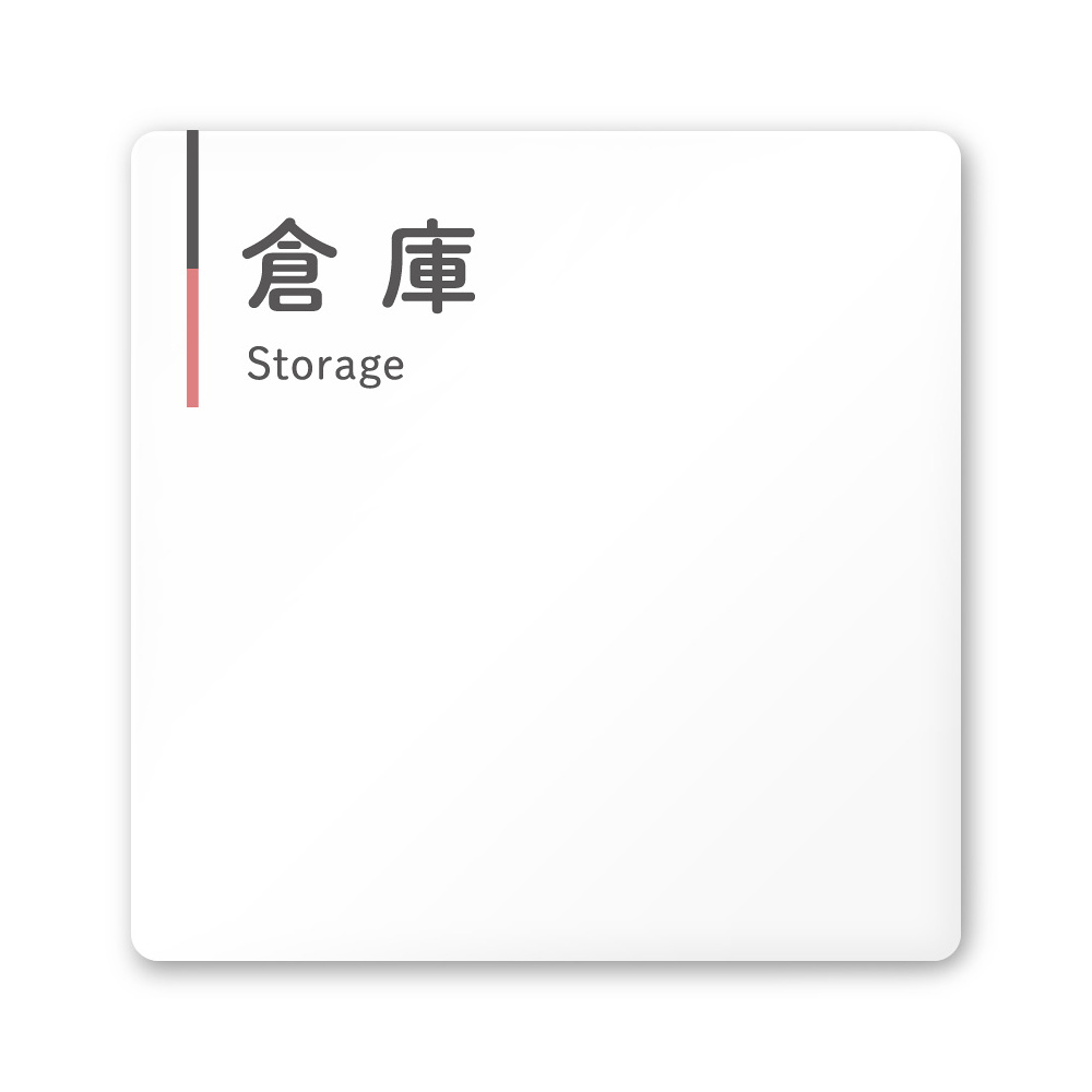 デザイナールームプレート 会社向け グレー×ピンク 倉庫 白マットアクリル W150×H150 (AC-1515-OA-NT1-0118)