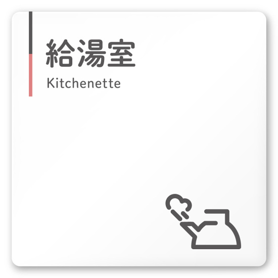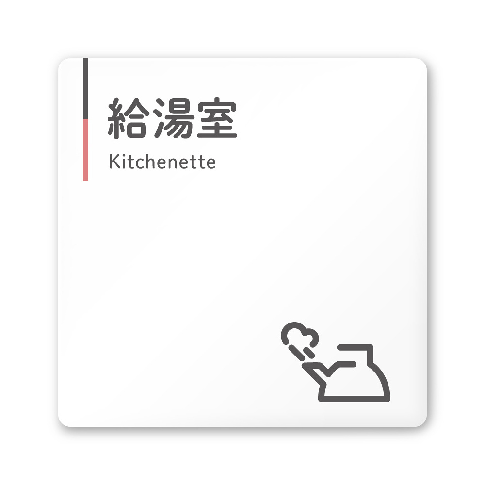 デザイナールームプレート 会社向け グレー×ピンク 給湯室1 白マットアクリル W150×H150 (AC-1515-OA-NT1-0119)