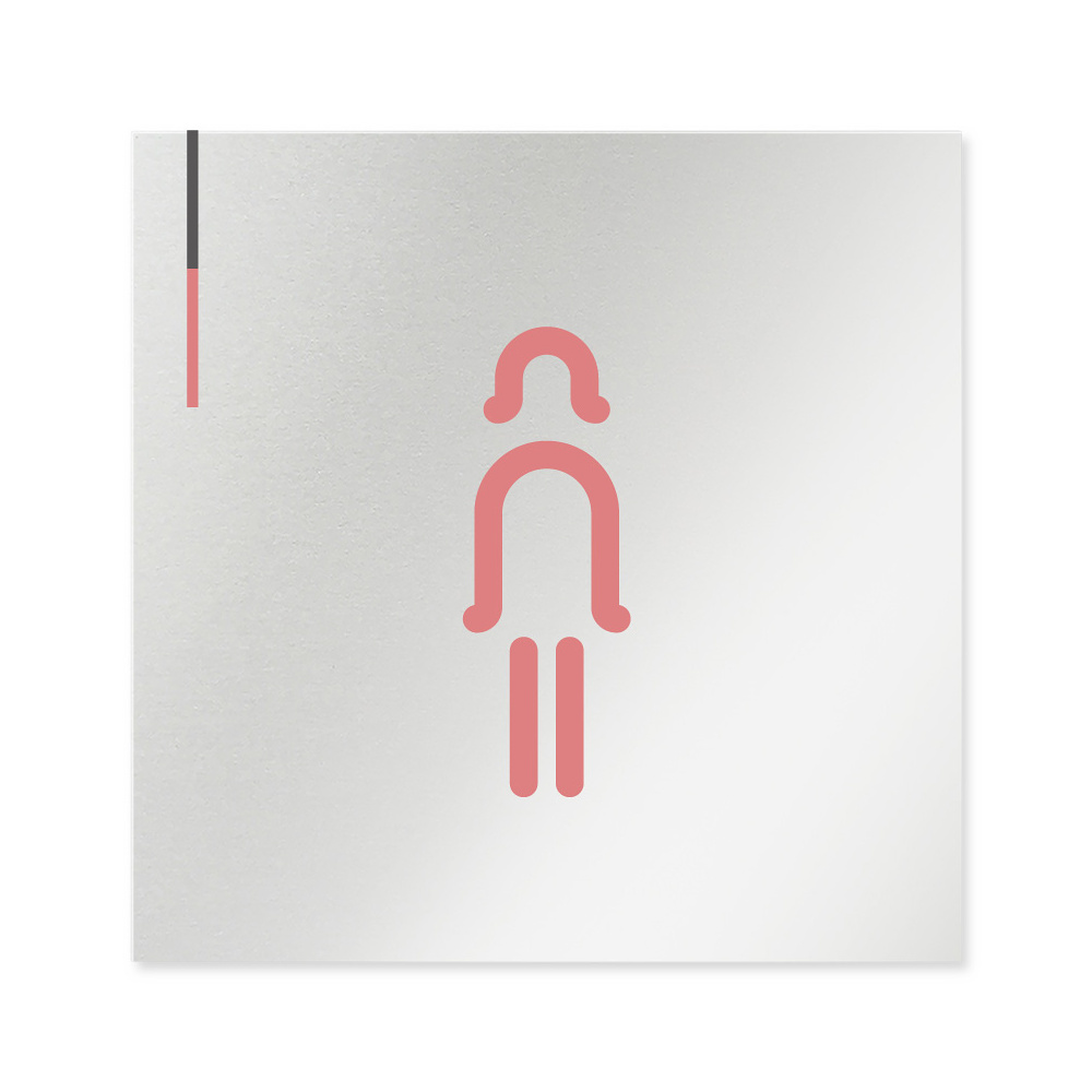 商品説明: デザイナールームプレート 会社向け グレー×ピンク 女子トイレ2 アルミ板 W150×H150 (AL-1515-OB-NT1-0106)