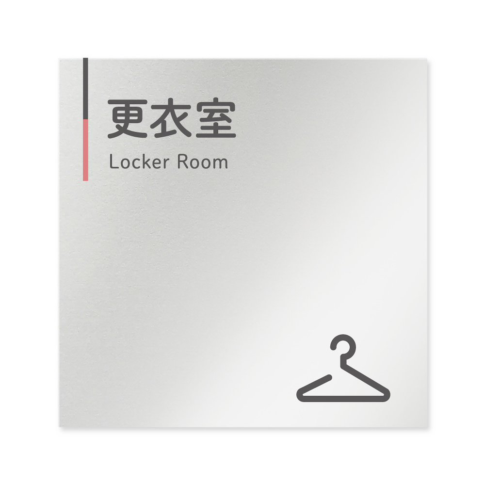 デザイナールームプレート 会社向け グレー×ピンク 更衣室 アルミ板 W150×H150 (AL-1515-OB-NT1-0107)
