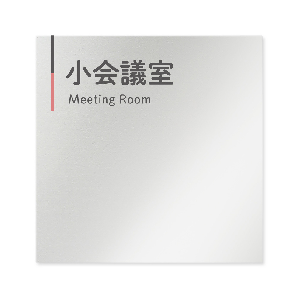 デザイナールームプレート 会社向け グレー×ピンク 小会議室 アルミ板 W150×H150 (AL-1515-OB-NT1-0110)