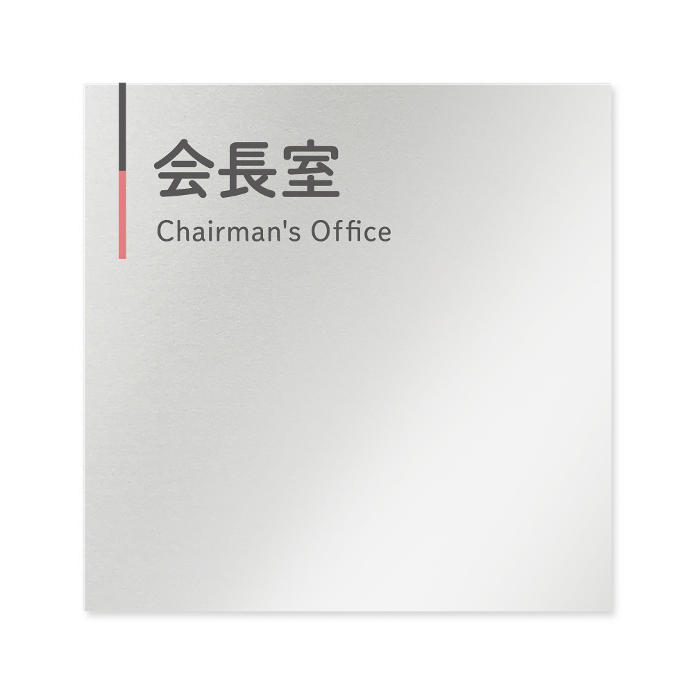 デザイナールームプレート 会社向け グレー×ピンク 会長室 アルミ板 W150×H150 (AL-1515-OB-NT1-0113)