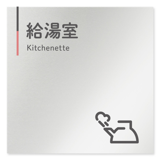 デザイナールームプレート 会社向け グレー×ピンク 給湯室1 アルミ板 W150×H150 (AL-1515-OB-NT1-0119)