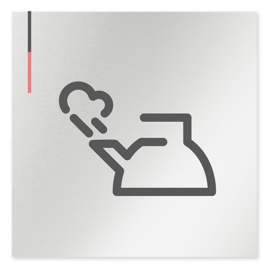 デザイナールームプレート 会社向け グレー×ピンク 給湯室2 アルミ板 W150×H151 (AL-1515-OA-NT1-0120)