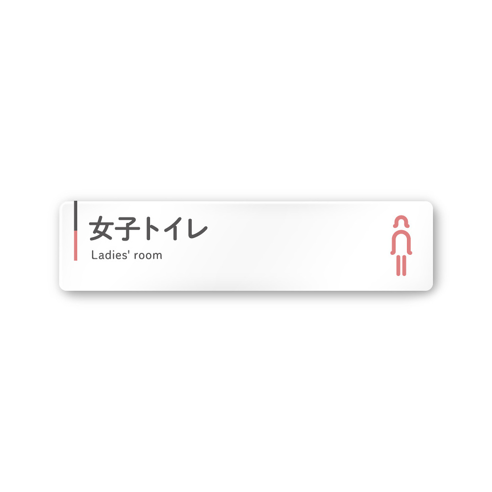 デザイナールームプレート 会社向け グレー×ピンク 女子トイレ1 白マットアクリル W250×H60 (AC-2560-OA-NT1-0205)