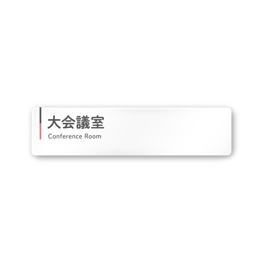 デザイナールームプレート 会社向け グレー×ピンク 大会議室 白マットアクリル W250×H60 (AC-2560-OA-NT1-0211)