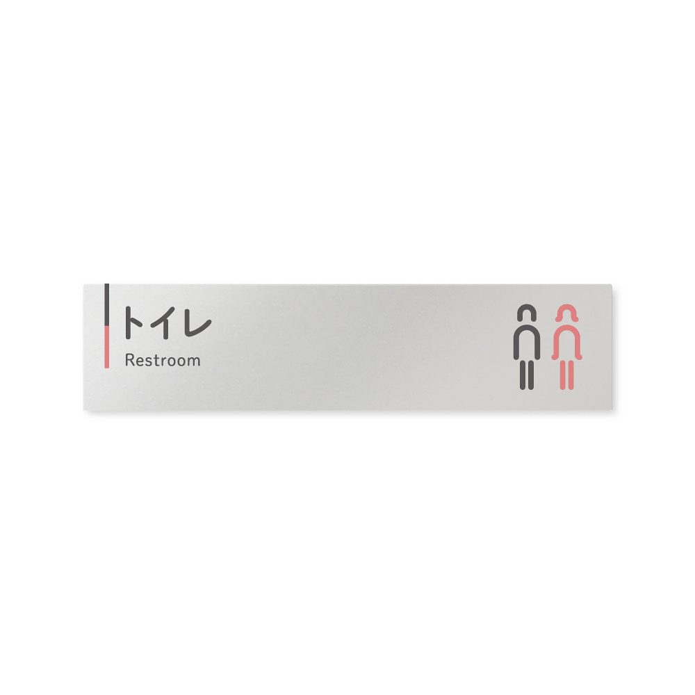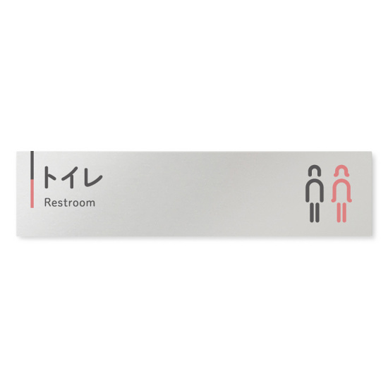 デザイナールームプレート 会社向け グレー×ピンク トイレ1 アルミ板 W250×H60 (AL-2560-OB-NT1-0201)