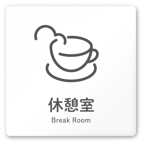 デザイナールームプレート 会社向け アイコン 休憩室 白マットアクリル W150×H150 (AC-1515-OA-NT2-0116)