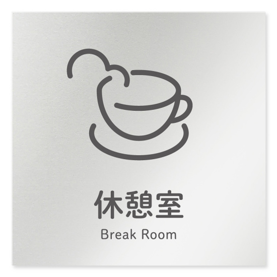 デザイナールームプレート 会社向け アイコン 休憩室 アルミ板 W150×H150 (AL-1515-OB-NT2-0116)