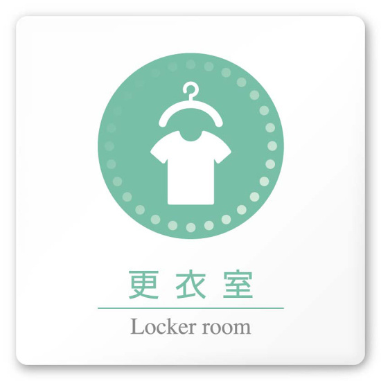 デザイナールームプレート 丸ピクト 更衣室 白マットアクリル W150×H150 (AC-1515-HA-HN1-0109)