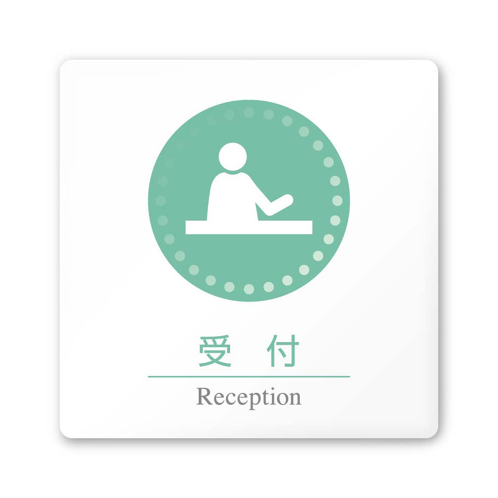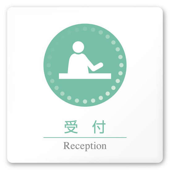 デザイナールームプレート 丸ピクト 受付 白マットアクリル W150×H150 (AC-1515-HA-HN1-0112)