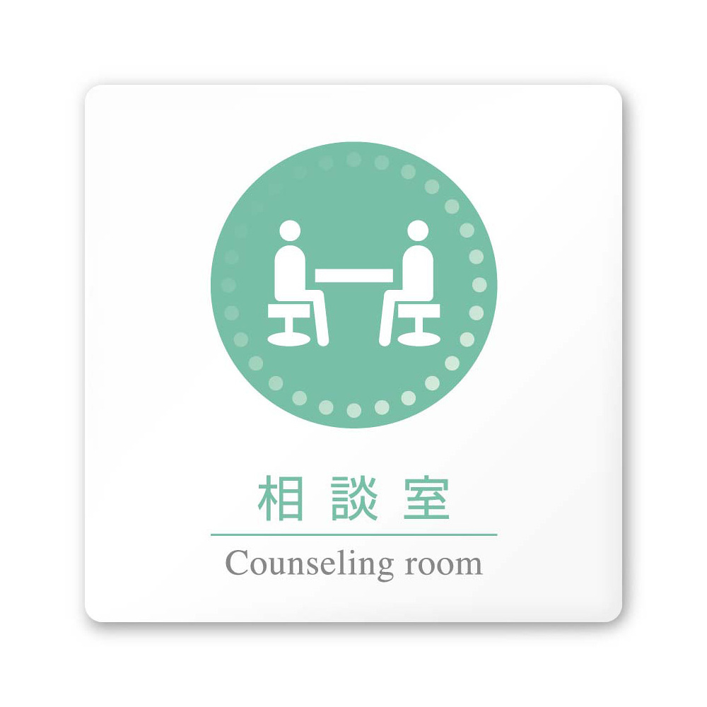 デザイナールームプレート 丸ピクト 相談室 白マットアクリル W150×H150 (AC-1515-HA-HN1-0114)