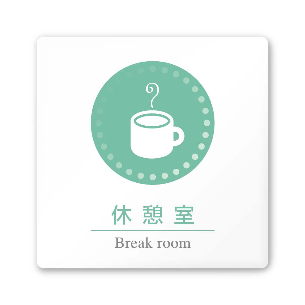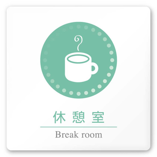 デザイナールームプレート 丸ピクト 休憩室 白マットアクリル W150×H150 (AC-1515-HA-HN1-0118)
