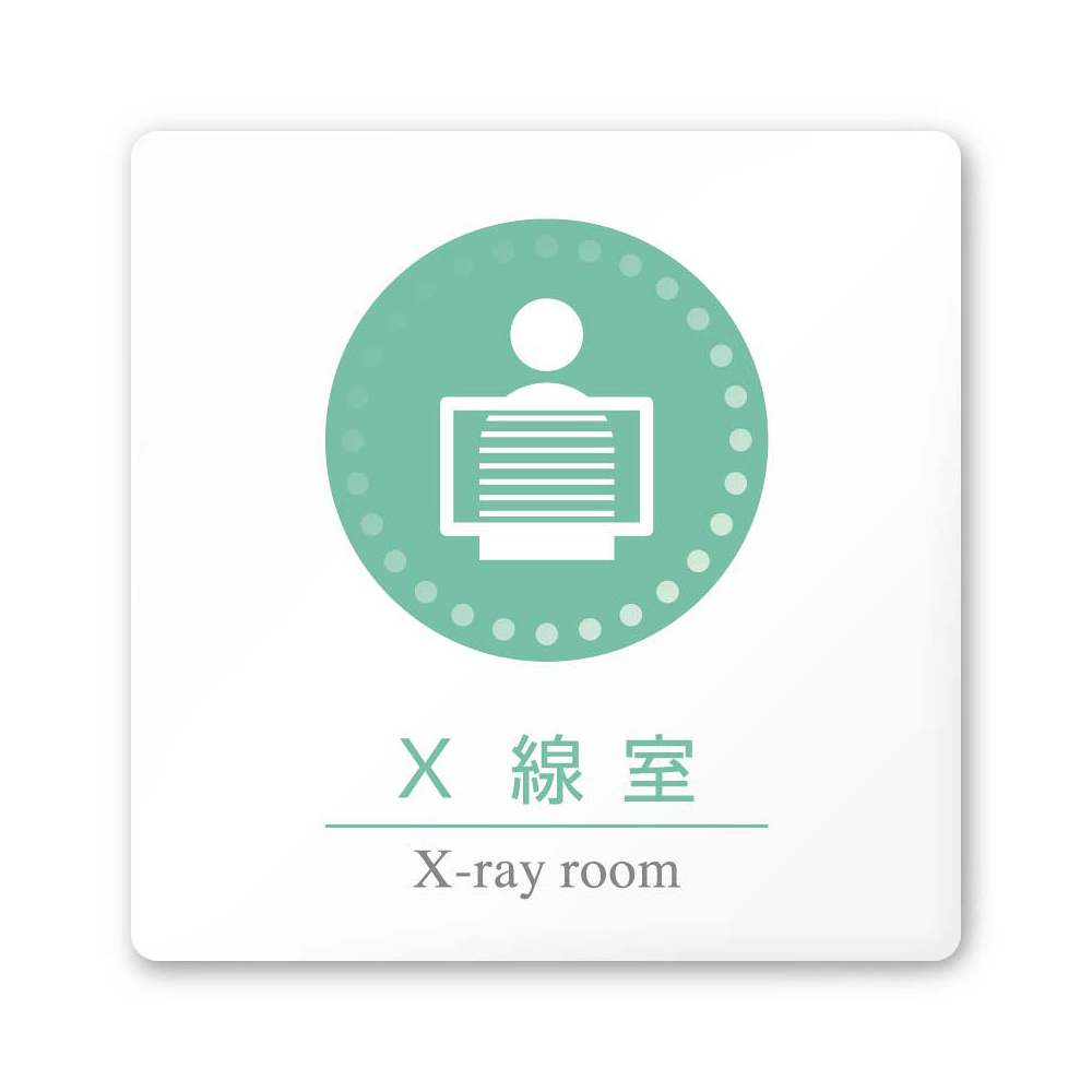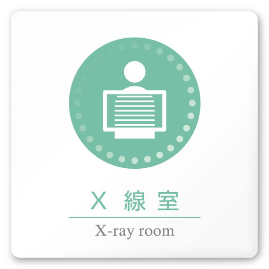 商品説明:デザイナールームプレート 丸ピクト X線室 白マットアクリル W150×H150 (AC-1515-HA-HN1-0119)